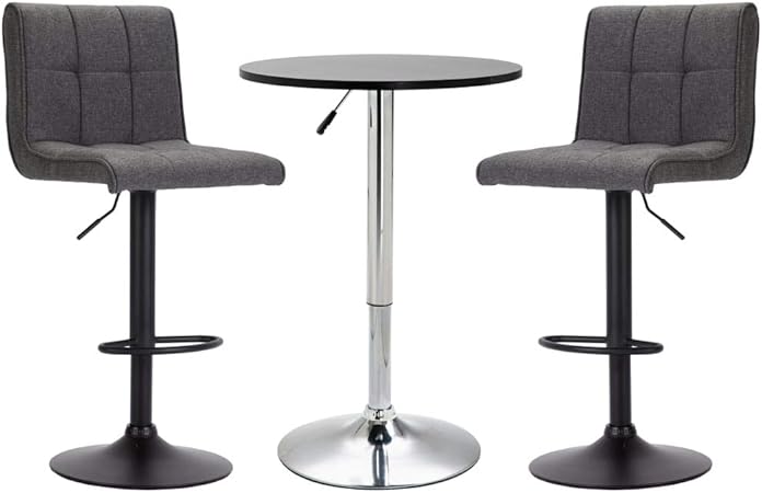 Vidaxl Mesa Alta Y Taburete De Bar 3 Piezas Hogar Jardin Terraza Bricolaje Decoracion Diseno Estilo Mobiliario Muebles Asiento Negro Y Gris Oscuro Amazon Es Hogar
