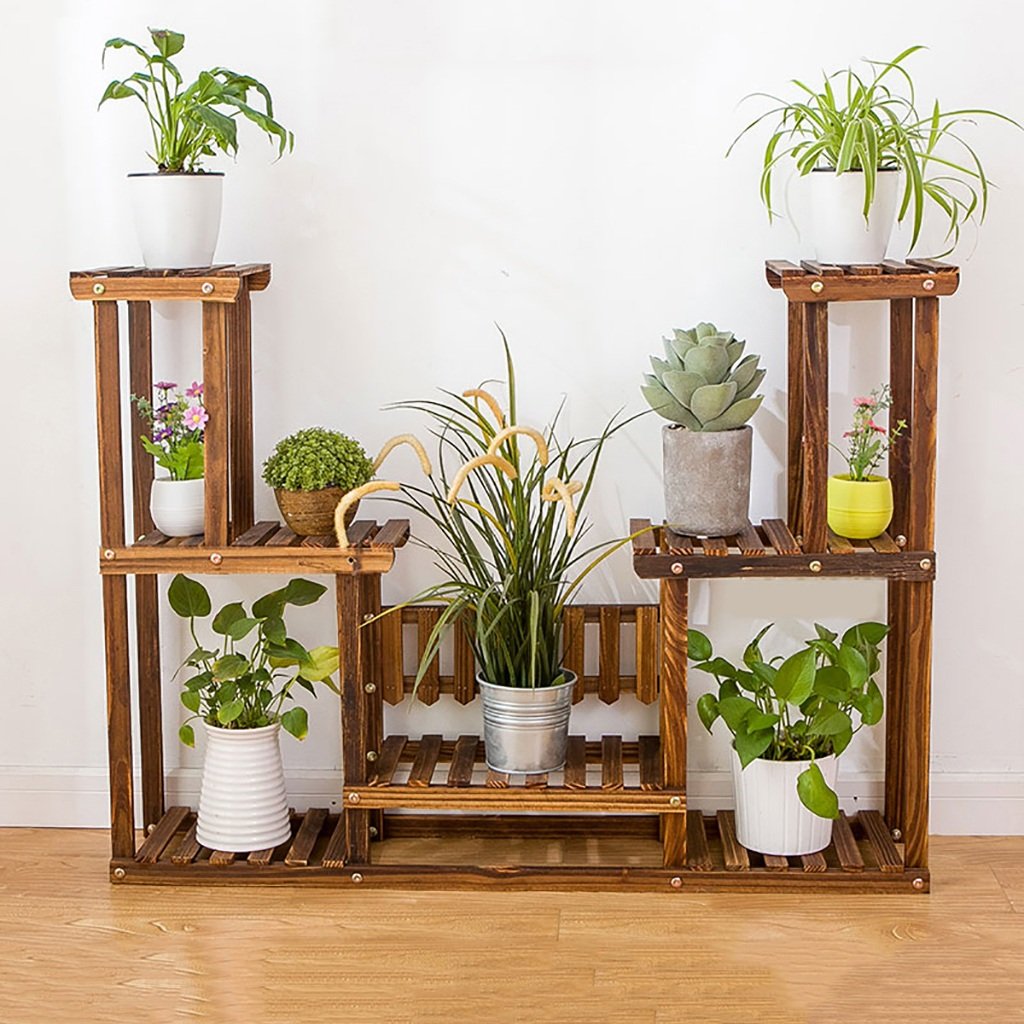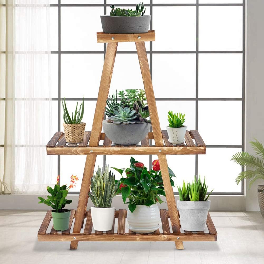 Lecxin Soporte De Flores Soporte De Planta De Diseno De Piramide De Madera Estante De Flores Suculentas Estante De Exhibicion Balcon Decoracion De Jardin Bricolaje Para Estante De Productos Basicos Jardineria Soportes